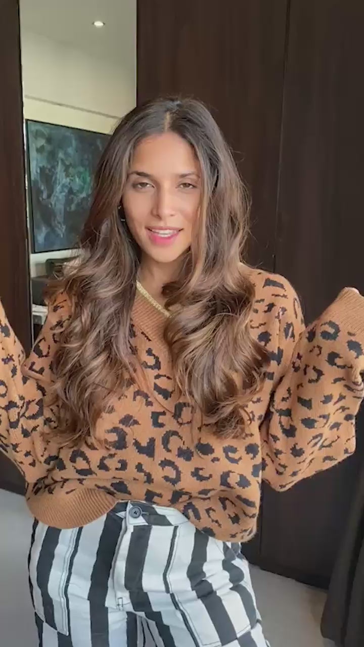Leo Pullover is warm high neck pullover in Leopard Print.