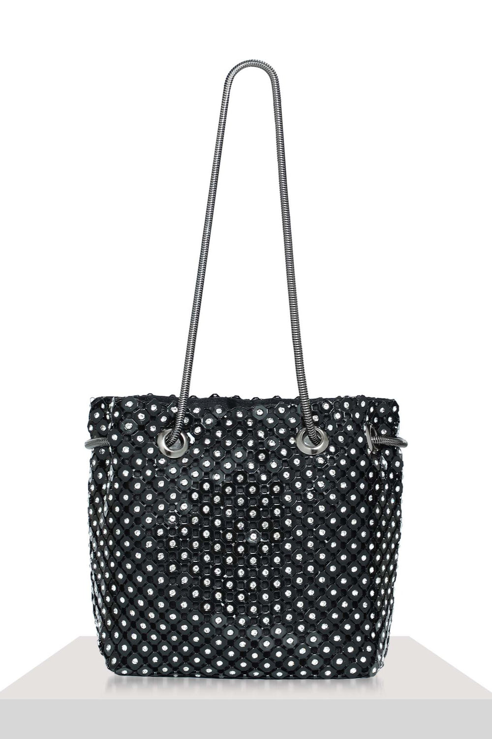 Crafted in a knightly shade of black, this bucket bag is more than just an accessory; it's a work of art. The black colour exudes sophistication and glamour, ensuring you stand out in any crowd. The New Moon Bucket Bag is designed for those who appreciate both fashion and functionality. Its bucket shape offers ample space to carry your essentials, from your smartphone and wallet to makeup and keys. The drawstring closure ensures that your belongings are secure while adding a touch of vintage charm.